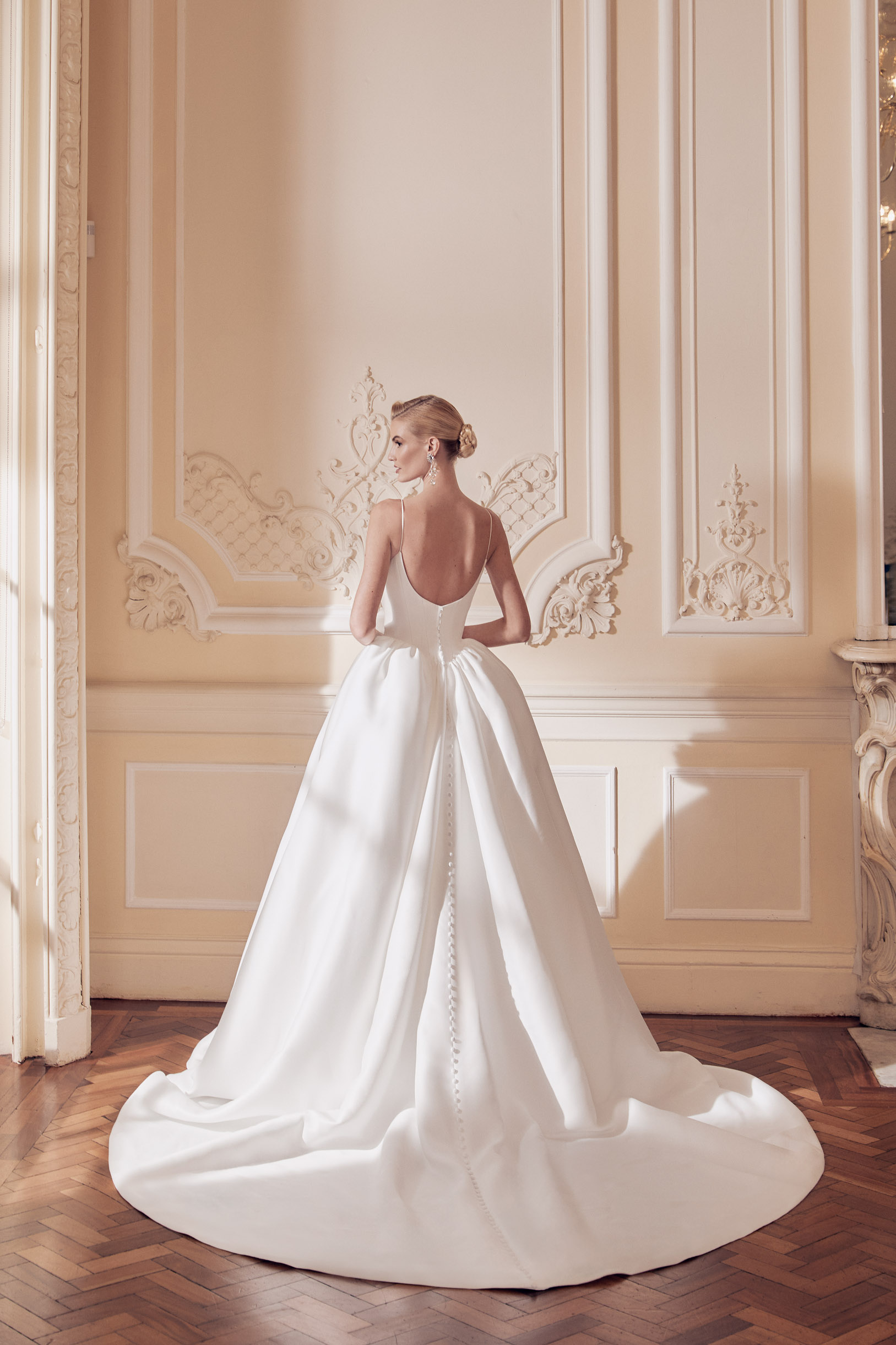 Our Ellis Bridals gowns are priced between £1400 and £1800 made-to-order.
